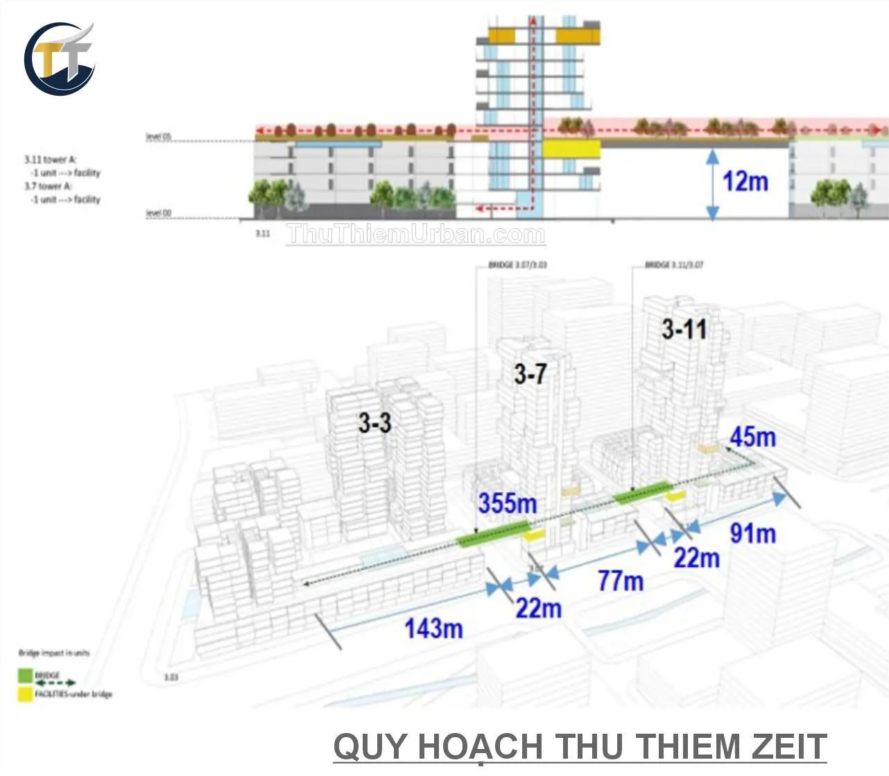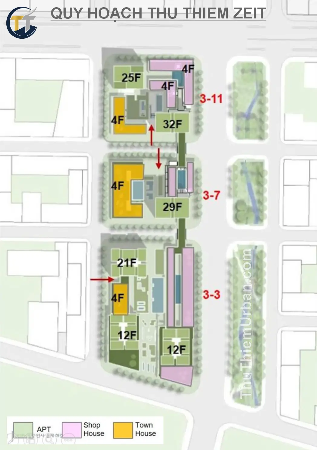 Thủ Thiêm Zeit River là phân khu đầu tiên chủ đầu tư GS E&C Hàn Quốc triển khai tại thủ thiêm. Đây là dự án phân khu được thiết kế gồm 2 tháp căn hộ cao 25 tầng & 32 tầng, ở dưới là khối đế cao 4 tầng với sản phẩm là shophouse & garden house, phân khu cũng có 2 tầng hầm với 470 chỗ đậu xe hơi & 283 chỗ đậu xe máy (trung bình 1,4 – 1,5 chỗ/căn).